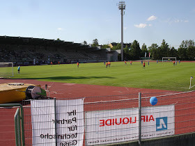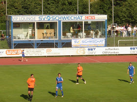 Stadtliga-Meister SV Schwechat gewinnt auch das letzte Saisonspiel gegen Slovan ziemlich souverän. Der Titel wird sehr freundlich mit freiem Eintritt und freien Getränken gefeiert. Daß ich nach den vier Toren jeweils dieselbe Tormusik wie am Horrplatz ertragen mußte, hat allerdings einen dicken atmosphärischen Minuspunkt eingetragen. Wie die Mannschaft bei der Meisterehrung eine bereits leere Magnumflasche Sekt wie einen Teller hochgehoben präsentiert hat, glich das aber wieder aus. Eine großartige Szene.
