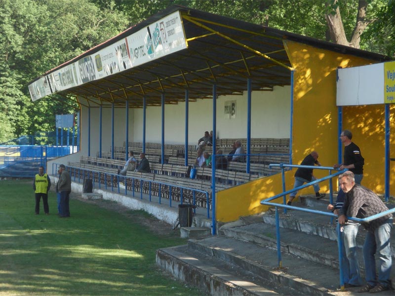 Das heutige Stadion na Lesní ulici war die Heimstätte des 1930 gegründeten Sportovní Klub Tatran Poštorná. Dieser Verein spielte von 1996 bis 2000 in der zweiten Liga, war aber 2005 bankrott gegangen (und wurde 2008 in einer unteren Liga neu gegründet). Als Kapazität des Stadions werden 7.230 Plätze angegeben, davon 830 Sitzplätze auf zwei Längsseiten- und einer Hintertortribüne. Der absolute Blickfang der Anlage ist die einzigartige Konstruktion der schmalen Haupttribüne mit zwei Rängen. Die alte Tribüne auf der Gegenseite mit wunderbaren Holzsitzen ist demgegenüber allerdings auch ein sehr schönes nostalgisches Prunkstück.