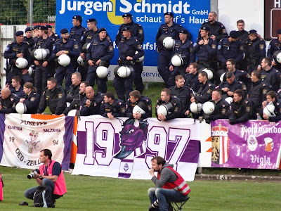 Für Stimmung am Platz sorgten von Anfang bis zum Schluß die tausend Salzburger Auswärtsfans, die alles boten, was man aus ihren Bundesligazeiten noch in Erinnerung hatte. Bei den Torjubeln merkte man, wie freudig-angespannt sie das Wiedererreichen des bundesweiten Rampenlichts ersehnen. Man muß sie nicht mögen − tue ich nämlich nicht − um großen Respekt für ihren Weg zu haben, ihrem Verein und ihren Farben treu geblieben zu sein und es aus dem Nichts bis hierher an die Schwelle des Profifußballs geschafft zu haben.