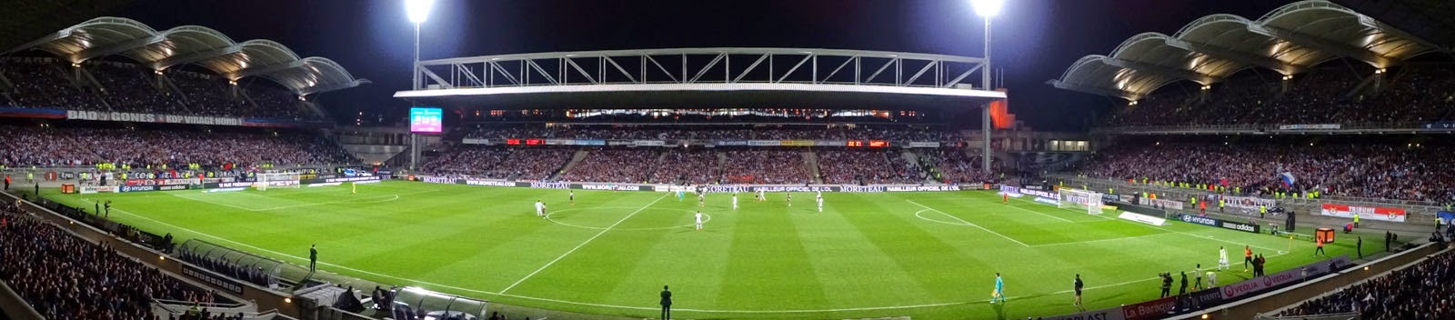 Der Stade de Gerland wurde erst vor einem halben Jahr besichtigt. Das Stadion wurde 1926 als mit Leichtathletiklaufbahn und Radrennbahn um das Spielfeld eröffnet. Von diesem Stadionbau stammen die charakteristischen alten Torbögen an den Eingängen. So erkennt man die unterschiedlichen Epochen eines gewachsenen Fußballstadions. 1961 wurde die Radrennbahn überbaut. Für die EM 1984 wurde das Stadion auf 51.000 Plätze ausgebaut. Für die WM 1998 wurden die Hintertortribünen neu errichtet, die sich durch die unterschiedliche Dachkonstruktion von den Längsseiten unterscheiden. Die Laufbahn wurde entfernt und mit den neuen Tribünen aus dem Oval ein reines Fußballstadion.