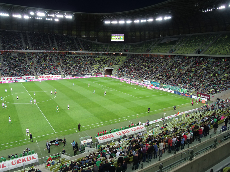 Die Arena Bałtycka wurde 2011 als Stadion der EM 2012 eröffnet. Es löste das alte Stadion Lechii ab. Das Stadion hat eine Kapazität von 41.620 Sitzplätzen. Der Stadionrekord liegt aber aufgrund Kapazitätseinschränkungen bei 39.460 Zuschauerinnen und Zuschauern beim Länderspiel Polen gegen Uruguay im November 2012. Bei der Europameisterschaft fanden hier 2012 drei Gruppenspiele und ein Viertelfinale statt.