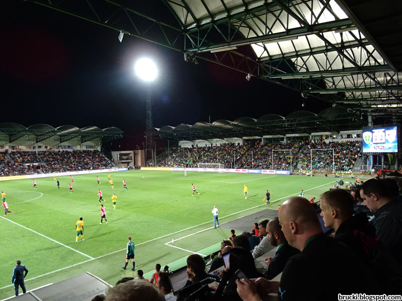 Zu Spielbeginn gab es eine Zettelchoreo auf der Hintertortribüne. Da die Ultras Žilina im Streit mit der Vereinsführung schon seit vielen Jahren die Fußballspiele boykottieren (es gibt hier ja auch Eishockey), ist es hier selbst im vollen Stadion atmosphärisch mau. Die von der Vereinsführung als Alternative unterstützten Fanclubs bringen ein dutzend Leute zum Support zusammen. Eine Gruppe Hooligans stand auf der Längsseite neben dem Auswärtssektor, hatte mit den auf Längsseite und Gästesektor verteilten Familienausflüglerinnen und -ausflüglern aus Bilbao aber nichts zu tun.