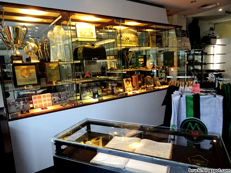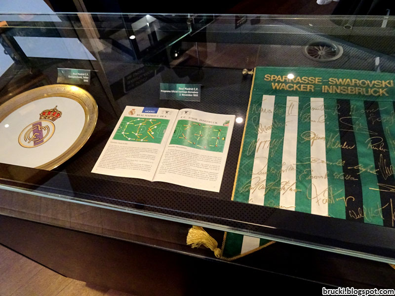 Im Raum des Fanshops unter der Osttribüne des Innsbrucker Tivoli-Stadions befindet sich auch eine Vitrinenwand mit Ausstellungsstücken aus der Geschichte des FC Wacker Innsbruck.