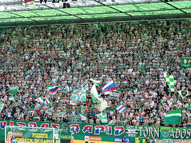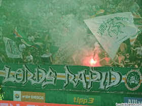 Die Atmosphäre im Stadion war, wie zu erwarten war, nocheinmal einen Schritt besser und dichter als vorige Woche. Schließlich ging es diesmal um etwas. Da der 18-jährige Rapid-Neuzugang Entrup Austria-Ultra der lila Ultragruppe „Inferno“ gewesen war, wurde ihm vom Block West Ablehnung entgegengebracht. Im Auswärtssektor begingen die Rieder Supras ihr zwanzigjähriges Jubiläum.