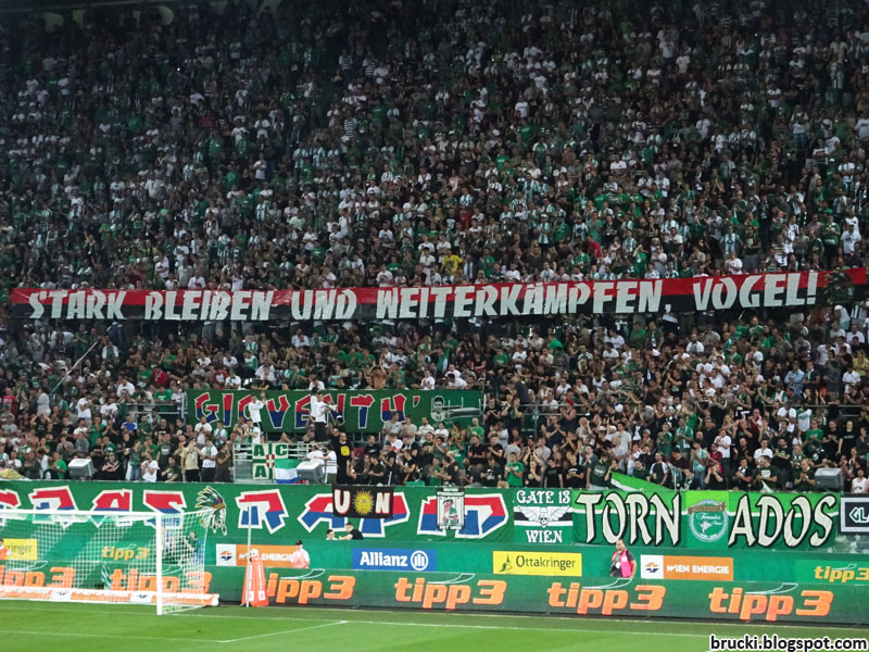 Die Ultras Trenčín bzw. Trenchtown Gangsters, wie sie sich auch nennen, boykottierten zwar vorige Woche in Žilina nicht offiziell, waren aber in stillem Protest und aufgrund interner Probleme nicht zugegen, wie danach zu lesen war. Diesmal kamen sie im Lauf der ersten Halbzeit in den Auswärtssektor und hängten anscheinend nach etwas Diskussion mit Ordnern ihren Fetzen an den Zaun. In einer Aktion feierten sie ihre kürzlich eingegangene Mitgliedschaft im Alerta Network.