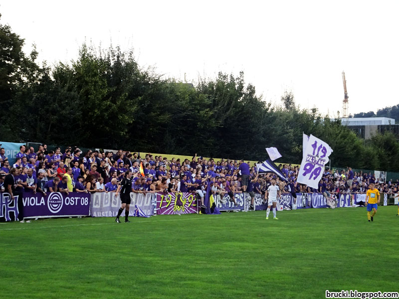 Die Kurve der Salzburger Violetten hatte sich am späten Nachmittag am Residenzplatz in der Altstadt getroffen und war von dort nach Nonntal marschiert. Am SAK-Platz füllte man die offene Längsseite und supportete vor dem Hintergrund des Festungsbergs. Nach Spielende gab es zum feierlichen Ausklang des Abends noch eine Pyroshow.