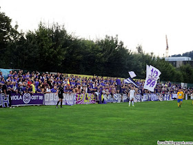 Die Kurve der Salzburger Violetten hatte sich am späten Nachmittag am Residenzplatz in der Altstadt getroffen und war von dort nach Nonntal marschiert. Am SAK-Platz füllte man die offene Längsseite und supportete vor dem Hintergrund des Festungsbergs. Nach Spielende gab es zum feierlichen Ausklang des Abends noch eine Pyroshow.