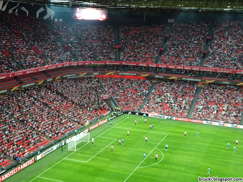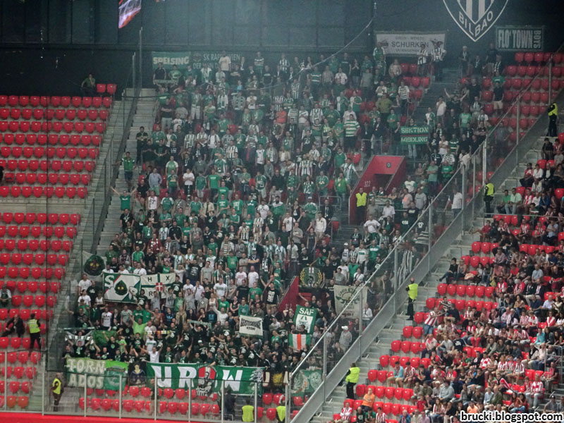 Etwa 800 Rapidfans unterstützten Rapid in Bilbao. Zum Stadion wurde von einem nahegelegenen Platz gemeinsam marschiert. Da Ultras-Aufschriften auch hier wie in Spanien fast überall üblich verboten sind, hatte ein eigens angefertigter Ultras-Auswärtsfetzen hier seine Premiere. Auf der anderen Seite gab es im Stadion einen Athletic-Fanblock, der Bänder in argentinischer Manier zeigte.