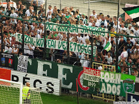 Torlos endete ein Spiel, das von den Rahmenbedingungen her nicht einem üblichen ungarischen Drittligaspiel entsprach. Nach dem sensationellen Spiel vor vollem Stadion in Csepel im Frühjahr wurde nunmehr in Pécs ein weiteres Mal der Zutritt der Fanszene von Ferencváros gegen den Willen der mit der ungarischen Staatsführung im Bunde stehenden Ferencváros-Vereinsführung zu einem Spiel zumindest der zweiten Mannschaft gestattet. Sie wussten das zu nutzen. Die 1.000 Plätze des Auswärtssektors waren schnell voll gewesen. Ein guter Teil der Zuschauerinnen und Zuschauer auf den Sitzpätzen der Haupttribüen war ebenfalls im Lager der Gäste, im Eck zum Auswärtsblock stehend und supportend. Aber auch die heimische Fanszene machte auf sich aufmerksam. Gemeinsam wurde von beiden Fanlagern der Fußballverband beschimpft.