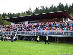Die Sportanlage im Freizeitpark Thal wurde ab 2000 errichtet. Auf der in der Mitte überdachten Längsseitentribüne war an diesem Vormittag kein Platz mehr frei.