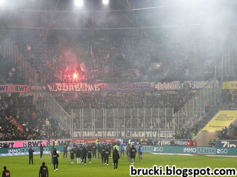 Vom Musiktheater am Volksgarten aus war Blau-Weiß im Corteo zum Stadion hinauf marschiert. Zu Spielbeginn verkündete der Gästesektor blau und weiß als „die Farben unserer Stadt“ und zeigte das Vereinswappen und ein blau-weißes Linzer Stadtwappen inmitten eines oben blauen und unten weißen Sektors. „Alé, Blau-Weiß, alé. Magischer FC. Uns're ganze Liebe, uns're ganze Kraft.“ war u.a. zu hören. Eine Viertelstunde vor Schluss gab es auch noch eine Pyroshow. Der Aufsteiger der vorigen Saison ist eine Fixgröße der Bundesliga geworden.